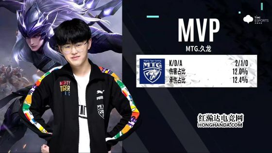 11分50秒,盾山二闪空掉倒地,老夫子扛住成吨伤害后倒地,周瑜二连击破,12分半,橘右京拿下暗影主宰,14分半,MTG五人带走蒙恬,镜拿下暗影暴君,16分50秒,老夫子犹豫捆人捆中镜自己反被击杀,吕布大招跳两人一刀刮死周瑜,不知火舞一扇子带走蒙恬,17分半,DYG下路高地被破,镜开大定身大乔将其打残,橘右京被集火倒地,MTG推掉敌方水晶,再扳一局。本局最佳给到MTG.久龙的吕布