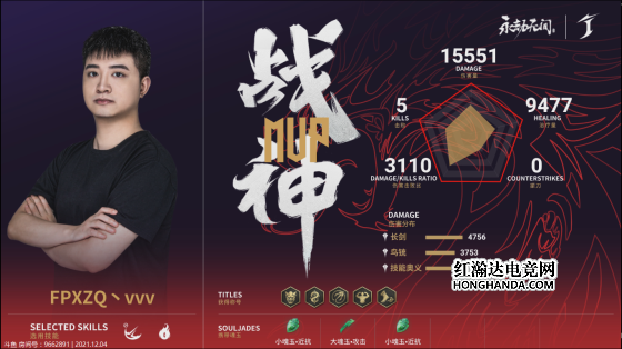 本局战神授予FPXZQ丶vvv。vvv本场宁红叶打出了超长控制,大招对场面的控制效果拔群,给人留下深刻印象。