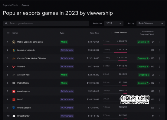 如果按照峰值观众数进行排列,MLBB的MPL联赛、东南亚杯、东南亚运动会均吸引了超过200万人,直接包揽榜单第2到4名,堪称海外最火爆的移动电竞项目之一。