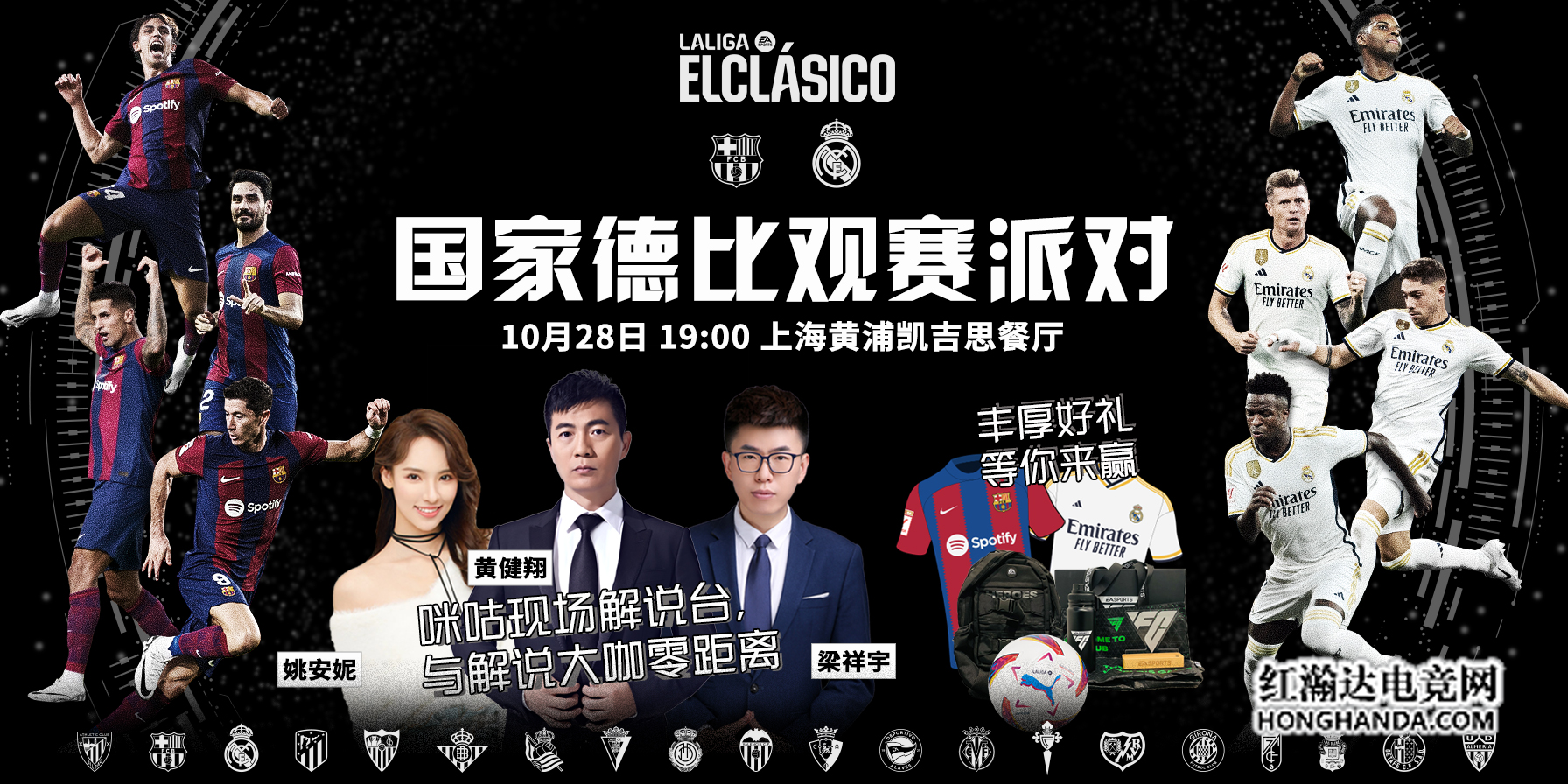 本次观赛活动为球迷准备了多重惊喜,著名足球解说黄健翔、梁祥宇将共同亮相并进行现场解说,与现场球迷共享比赛精彩瞬间。此外,活动现场还将进行丰富的游戏和有奖活动,其中包括EA SPORTS FC ONLINE表演赛和十种运动体验游戏,参与挑战实时排名将有机会赢得国家德比传奇球星定制互动视频、皇马巴萨主场球衣、EA SPORTS FC礼盒、咪咕足球通会员卡等丰厚奖品。球迷可前往大众点评购买“CAGES国家德比限定套餐”,包含当晚无限游戏金币、三张马傲啤酒或软饮料兑换券以及一张国家德比球迷抽奖券,提前锁定活动席位。更多活动讯息可关注西甲联赛官方社交媒体相关推文。