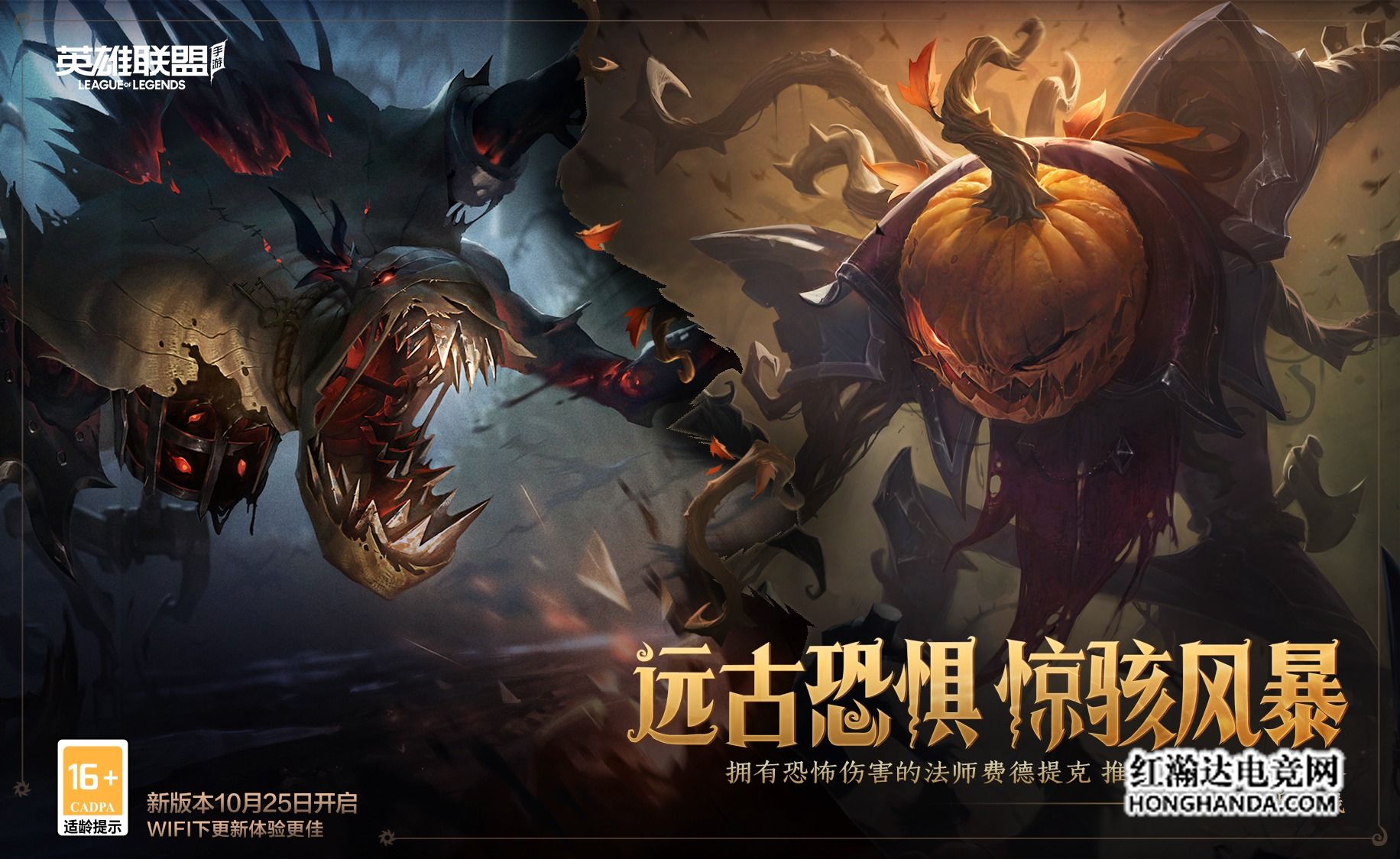 在本次“狩猎派对”版本中,将会上线3位全新英雄:别看远古恐惧·费德提克是脆皮法师,但他极有可能是野区的新主宰,围绕在他身边的群鸦,将会成为压垮敌人的最后一根“稻草”!10月25日新版本更新后,参与相关活动,即可限时免费领取这个“稻草人”!