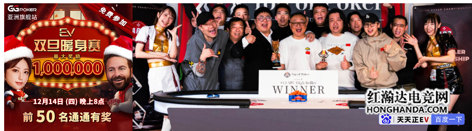 而国人顶尖选手在全球舞台上展露头角之时,也不忘与国内玩家们进行切磋,EV作为GGPoker直营亚洲旗舰品牌,今年也举办了各种免费锦标赛让所有国人玩家在线同欢,12月我们即将迎来"EV双旦暖身赛"!