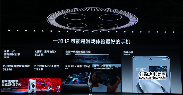 一加 12 搭载全新自研 HyperBoost 游戏稳帧引擎,通过 GPA 极限稳帧和图形异构算法,优化资源分配,提升图形渲染效率,确保高画质的同时降低掉帧次数。一加 12 两小时高负载测试,实现了《原神》59.9 帧、《王者荣耀》119.9 帧,轻松做到几乎全程满帧。