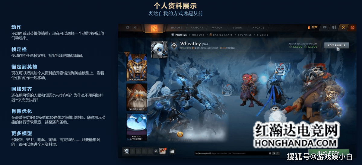 今年DOTA2游戏内的UI在起源2引擎的加持下,继续更新迭代中,更新后的兵器库更加一目了然,方便玩家整理自己的英雄饰品。个人资料界面也进行了完全的重做,现在玩家可以更加自由的自定义自己的个人资料界面展示,可以展示静态/动态的英雄、饰品、战绩、表情等等。