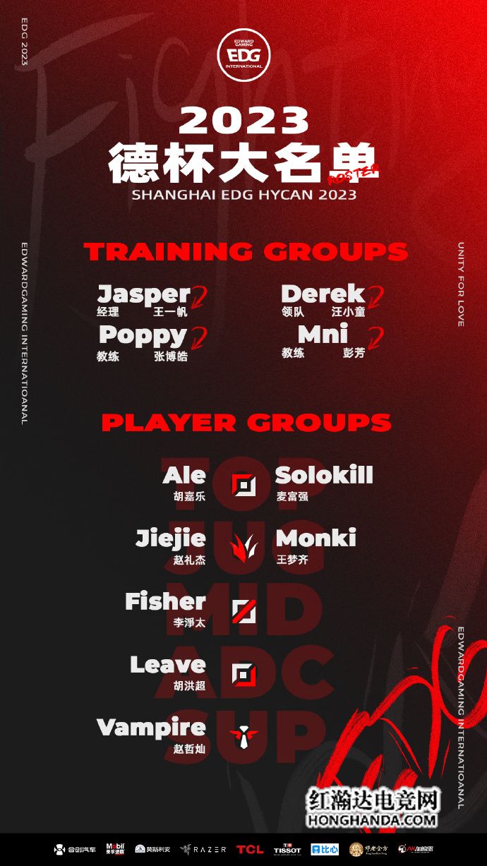 上路双替补Ale与Solokill携手备战,而在打野位置,EDG将依赖Jiejie与Monki的两名打野与队友合作。中单将由Fisher负责,下路则是Leave,而辅助位置则交由Vampire担任。