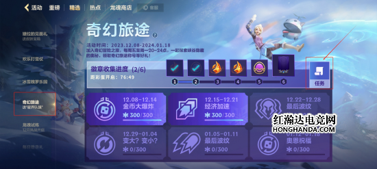 截止至2024/01/18前,在奇幻旅途中参与冰雪冒险之旅,完成相应的任务累积奥秘收集进度,就可获得龙魂水晶和无畏队旗!
