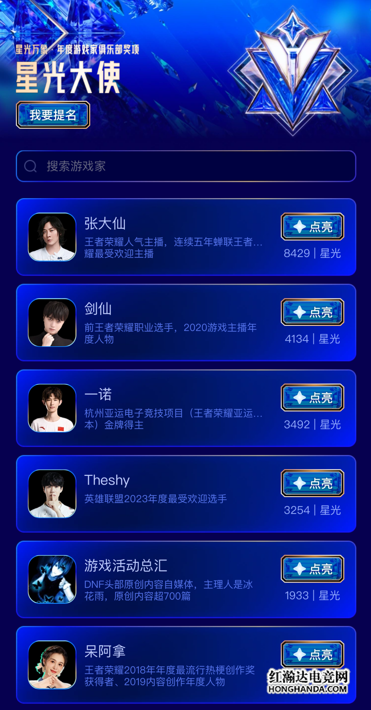 部分星光大使提名名单,完整名单可前往心悦俱乐部App查看>>