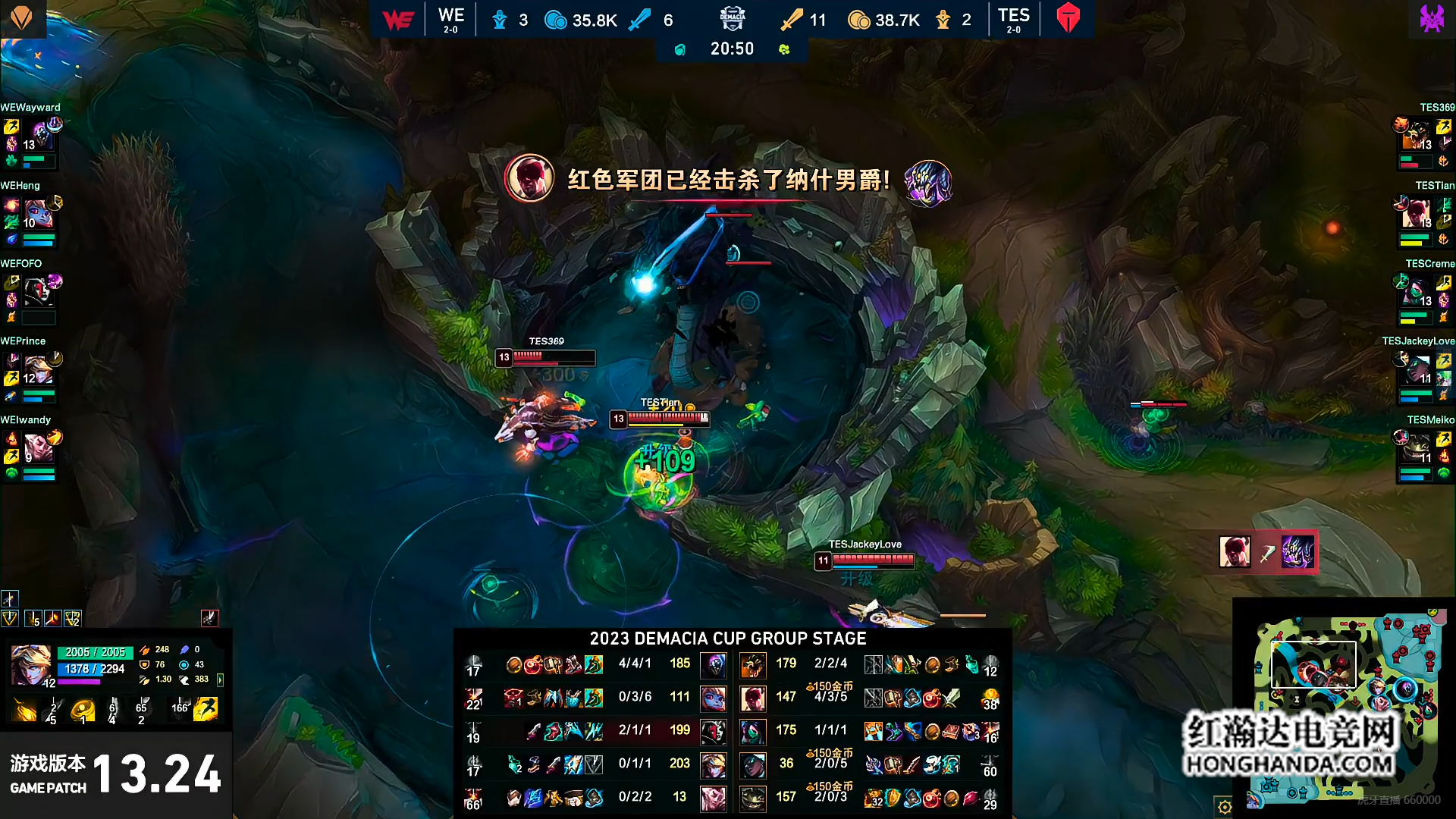 北京时间12月25日,2023德玛西亚杯D组的最后一场比赛TES vs WE。TES开局在对线期拿到优势,中期换线的时候被WE找到机会,将比赛节奏拖到WE的带线节奏。在面对WE的分带阵容正面缺少伤害也容易被开,TES正式抓住WE的这点,正面边线大获全胜拿下小组赛三连胜。
