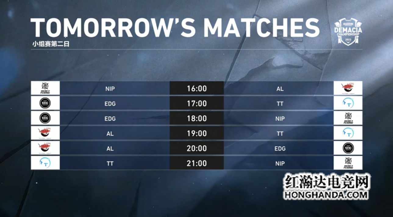 明天的德玛西亚杯比赛将是A组的四支队伍NIP、EDG、AL、TT。这四支队伍将争夺一个八强名额。