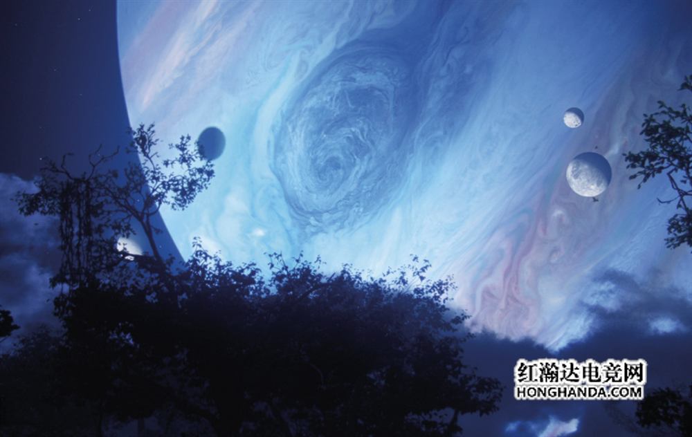 (影像里的潘多拉天空,可以看到类似木星的气态行星)