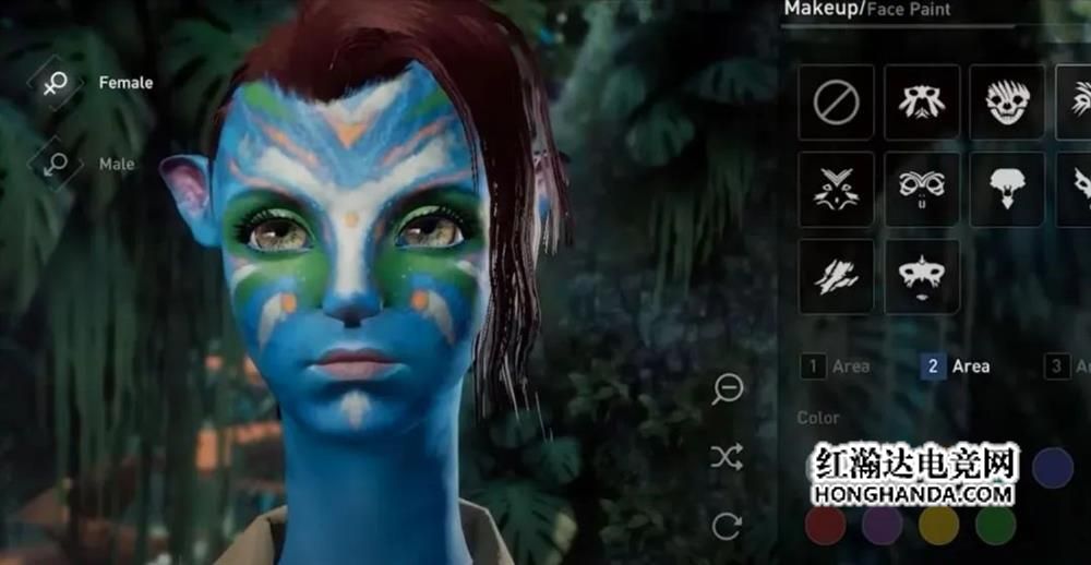 你可以自由定制属于自己的“阿凡达”角色。性别、脸部特征、妆容,甚至是面部和身体的油彩、生物荧光都可以随意定制。在虚幻4引擎加持下,简直分毫毕现。