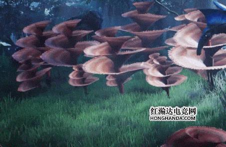 不同天气下,植物被风吹拂的幅度不大一样,人物经过某种花朵,它们还会害羞般地缩回根茎中。在物理引擎模拟真实世界的生动表现下,穿梭其间有如深海探险一般诡异绮丽。