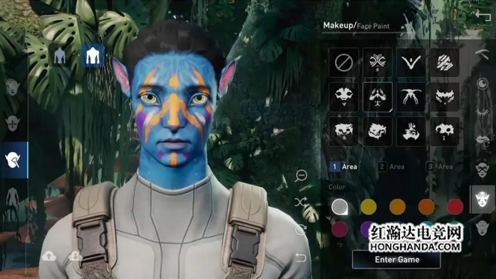 从外网的流出的视频不难看出,《阿凡达:重返潘多拉》会是一款以射击玩法为主的免费MMO手游,玩家主角将探索这颗神秘的星球,自然地,一个阿凡达的化身是必不可少。这里也是发挥本作MMO属性的一个要点,丰富的自定义角色以及角色养成是不可或缺的环节,从性别,五官细节,身体轮廓,面部和全身都有的油彩/生物荧光、发型等方面的捏人选项,尤其是面部彩绘的加入和电影中的展现基本一致代入感更强。