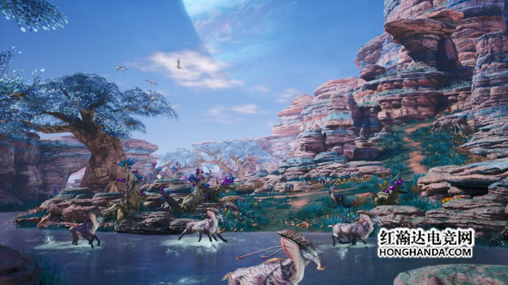 此外,相信对于阿凡达粉丝而言,瑰丽神秘的潘多拉星球总是那么令人向往,高耸入云的古树,悬浮在空中的巨石,如含羞草一般碰到人就闭合缩小的植物,成群翱翔的斑溪兽,这些宣传片以及录像中的熟悉景观想必能够勾起阿凡达粉丝的回忆,而作为一款MMORPG,《阿凡达:重返潘多拉》中开阔的地图就可以尽可能地为玩家呈现潘多拉星球的生态环境以及独特的地貌,同时能让玩家亲自在这片土地上冒险。