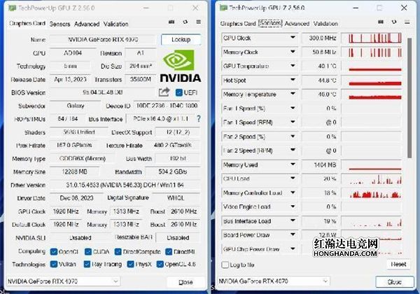 首先是检测软件GPU-Z可看到影驰 20 周年 GeForce RTX 4070 纪念版的产品规格和基本参数,以及其待机温度为 40.1°C,功耗为3.6W。