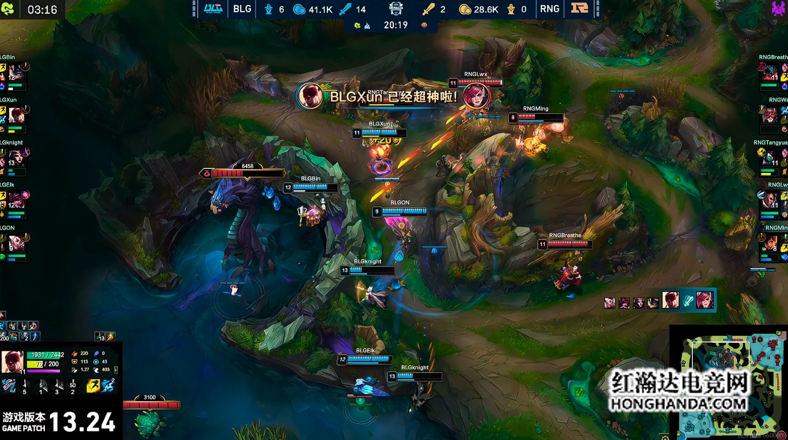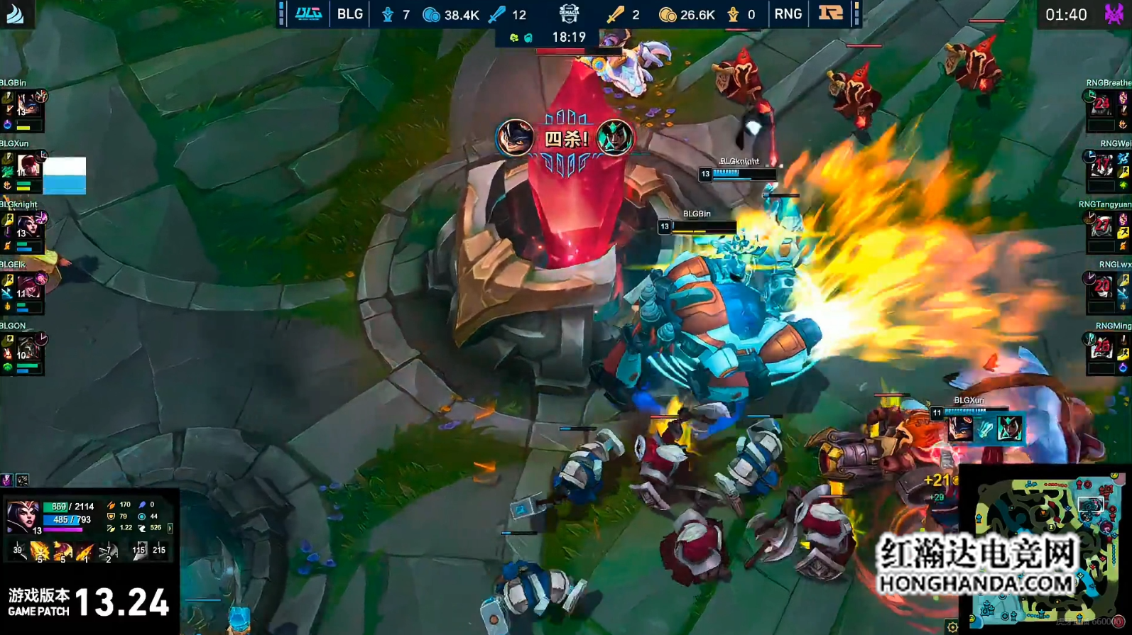 Bin兰博“烧烤大师”高地怒斩四杀,BLG3-1击败RNG晋级四强