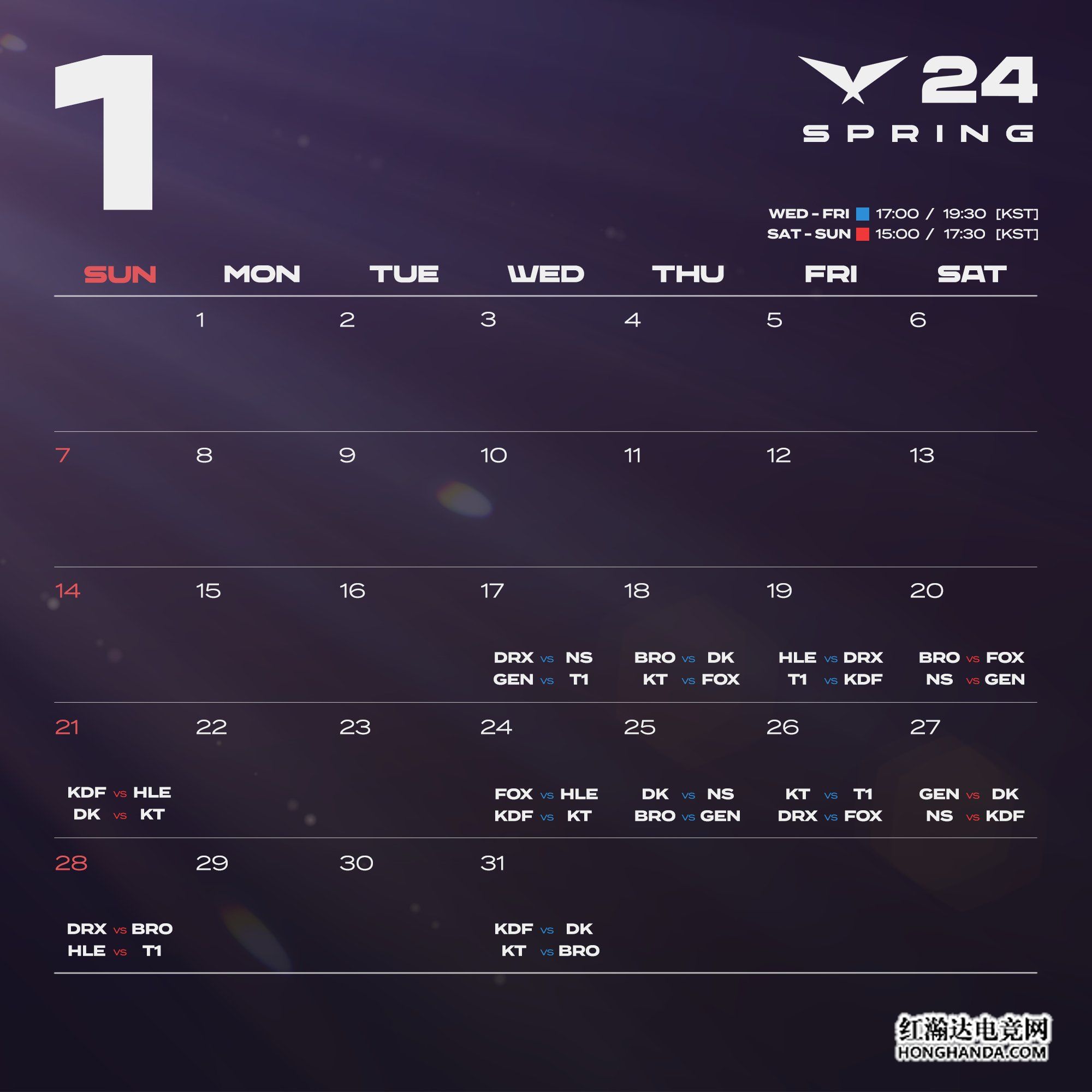 1月4日,LCK赛区正式公布2024LCK春季赛赛程。