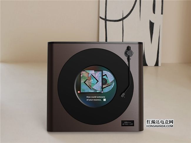 音箱外形模拟黑胶唱机,并且使用了轻奢感的北美黑胡桃木纹,装饰性十足。还有可以手动拨动仿真唱针,模拟传统黑胶唱机的唱片形态,仪式感满分。