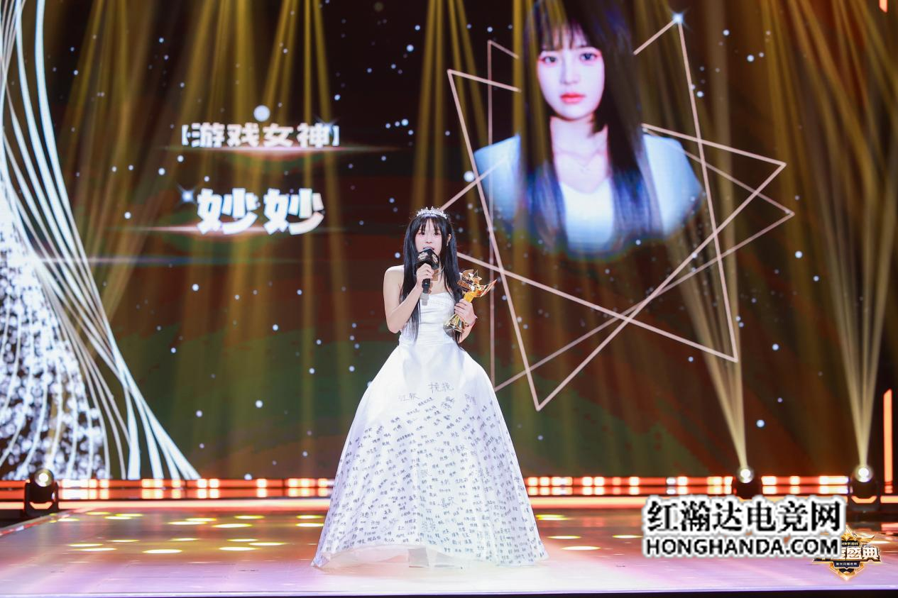 典礼开启后,现场更是精彩纷呈,惊喜不断。游戏女神妙妙登场,将晚会气氛逐步推上了高潮。为了表达自己对粉丝们的感谢,妙妙更是身着一席粉丝签名的晚礼服出席现场,并上台领奖,用真诚与温暖打动着每一位快手粉丝。