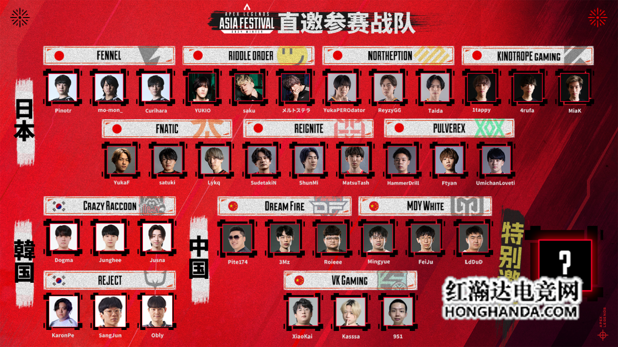 英雄亚洲尖峰嘉年华冬季赛」中日韩战队信息第一弹!「Apex