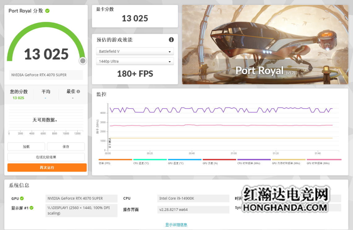 Port Royal实时光线追踪基准测试中,显卡分数13025