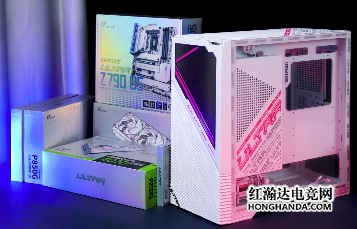 iGame Ultra家族系列产品将引领潮流的波普风蔓延至各类DIY硬件,包括机箱、散热、水冷、主板、内存,白色主题也是当下流行的桌搭风格,除了极具视觉冲击力的外观,iGame Ultra家族各个配件都在各自的同级别产品中均有着不俗的产品力,在当前的DIY圈子中,风格统一的家族系列一直都是用户心中的白月光,选择一套家族系列的PC整机也是许多桌搭爱好者的不二之选。