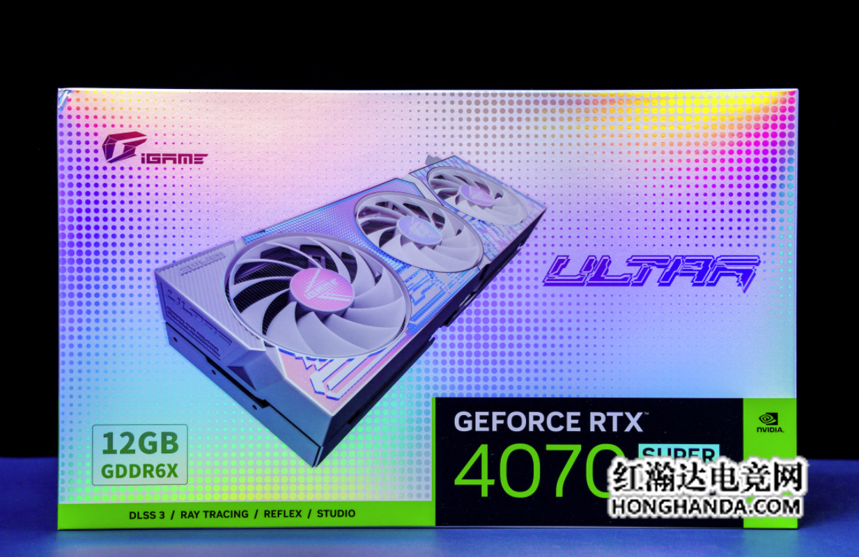 本次iGame GeForce RTX 4070 SUPER Ultra W OC 12GB显卡新品首测测试平台采用了iGame Ultra家族系列产品,整体采用了独特的波普风格,天马行空极具个性,该家族系列产品是七彩虹在diy方面,为玩家提供了一整套的官方解决方案,各种色彩搭配物理接口和走线、灯效等设计美观实用,安装省时省力极为方便。