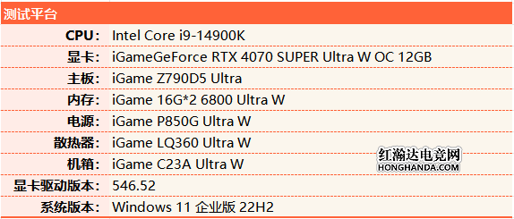 聊完外观部分,我们接下来就实际测一下iGame GeForce RTX 4070 SUPER Ultra W OC 12GB这块显卡在实机性能方面的表现,测试环境温度20度,常规模式最大限度模拟日常使用环境。