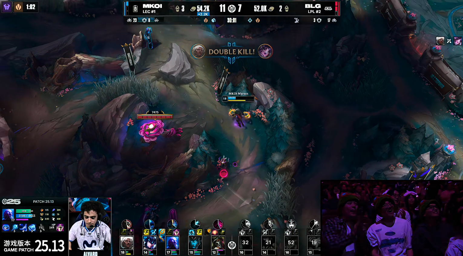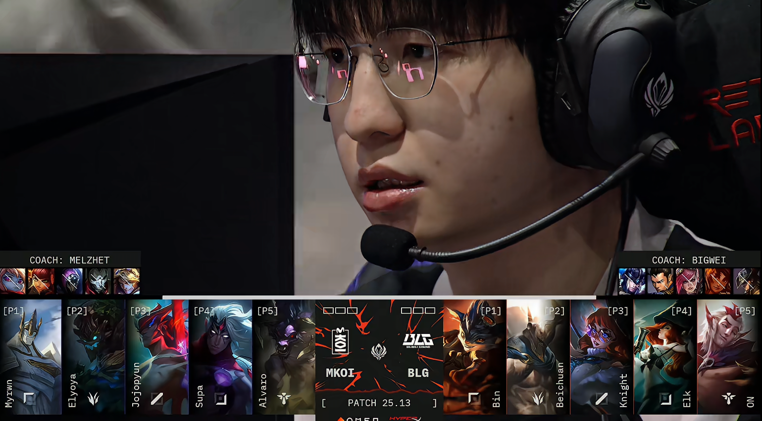 中期对抗中,BLG三路线权占优,但在17分钟Beichuan释放峡谷先锋撞毁MKOI中路一塔后出现失误,上车被秒遭集火击杀,MKOI趁势控下小龙。但BLG迅速调整节奏发起反打,团战中击杀MKOI四人,重新掌控局势。