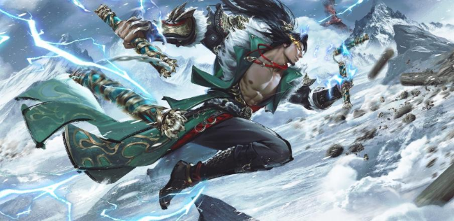 在《三国杀移动版》周年庆期间,【孙策】的至尊双形态动态皮肤“傲凌绝顶”同步亮相。一形态的【孙策】屹立于高山之巅,在冰霜环绕之中手持双节棍,展现出无畏冲锋的英姿;二形态赤膊挥拳,气势磅礴,身旁的猛虎与蛟龙更是彰显了他的强大气场。值得一提的是,当玩家处于主公身份时,【孙策】的皮肤原画将出现龙纹等细节,尽显至尊质感。