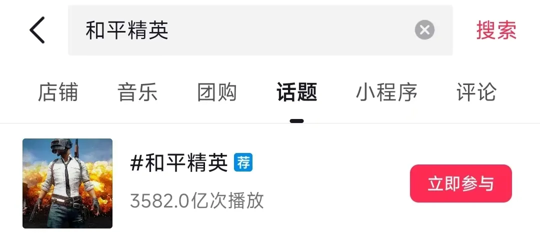 在三亚的《和平精英》刺激之夜现场,葡萄君在等待节目开始时,打开手机刷了刷抖音,发现一件很出乎意料的事:#和平精英 话题词在抖音居然有3580亿播放量,在游戏圈几乎是一骑绝尘。要知道,近期火热的#旅游 和#演唱会话题也才分别是1947亿和753亿。