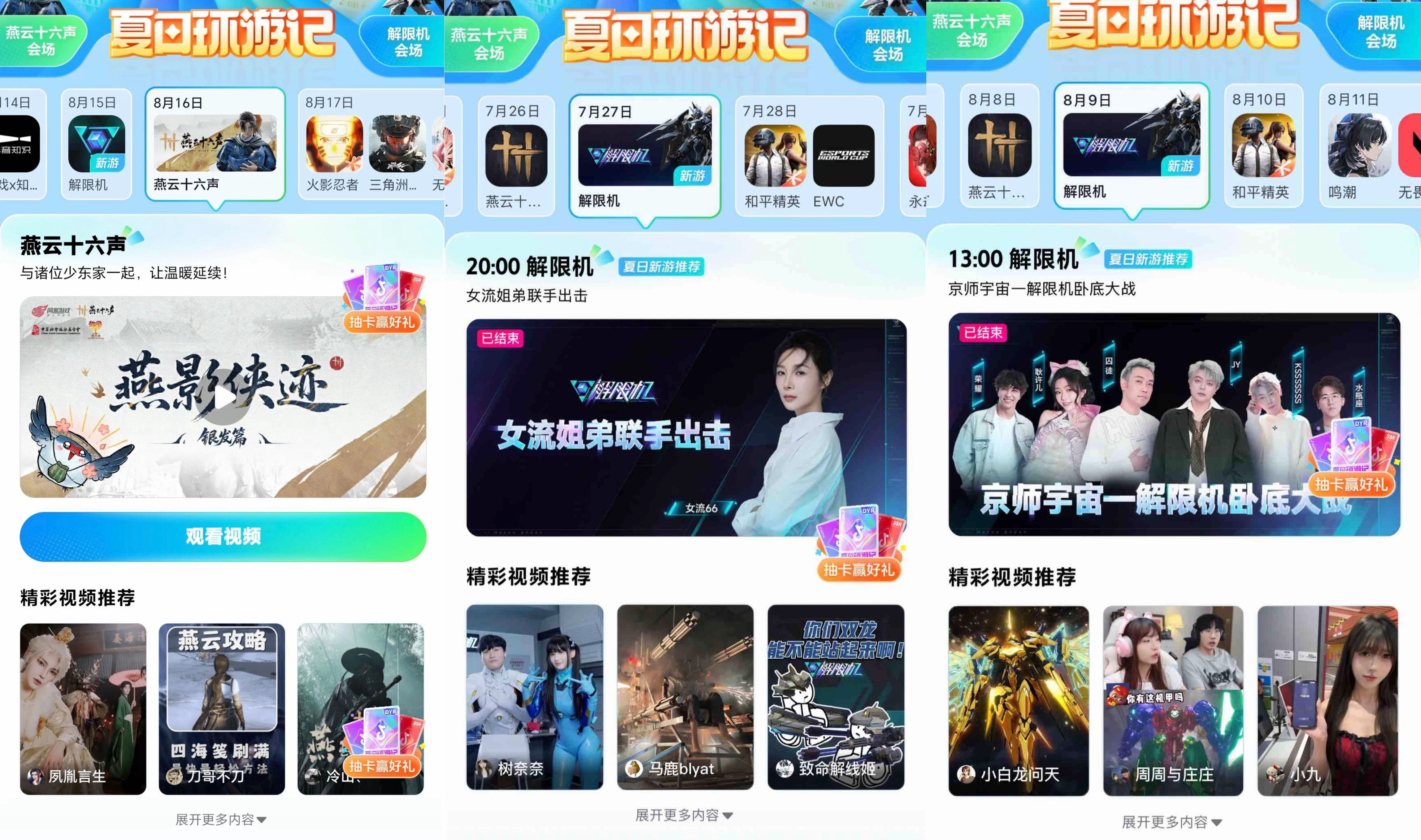 网易《燕云十六声》自年初上线以来,站内话题播放量已接近300亿。本次夏日环游记专场活动,更是借助达人视频内容及直播互动,超多优质定制化内容精准触达核心玩家圈层,抖音站内的讨论热度居高不下,为全新版本上线积蓄势能。而称得上是今夏最受期待的新游《解限机》,线上合作知名游戏主播女流66打造专场直播,带玩家直观感受机甲的魅力,为游戏聚拢了大量玩家关注和讨论。