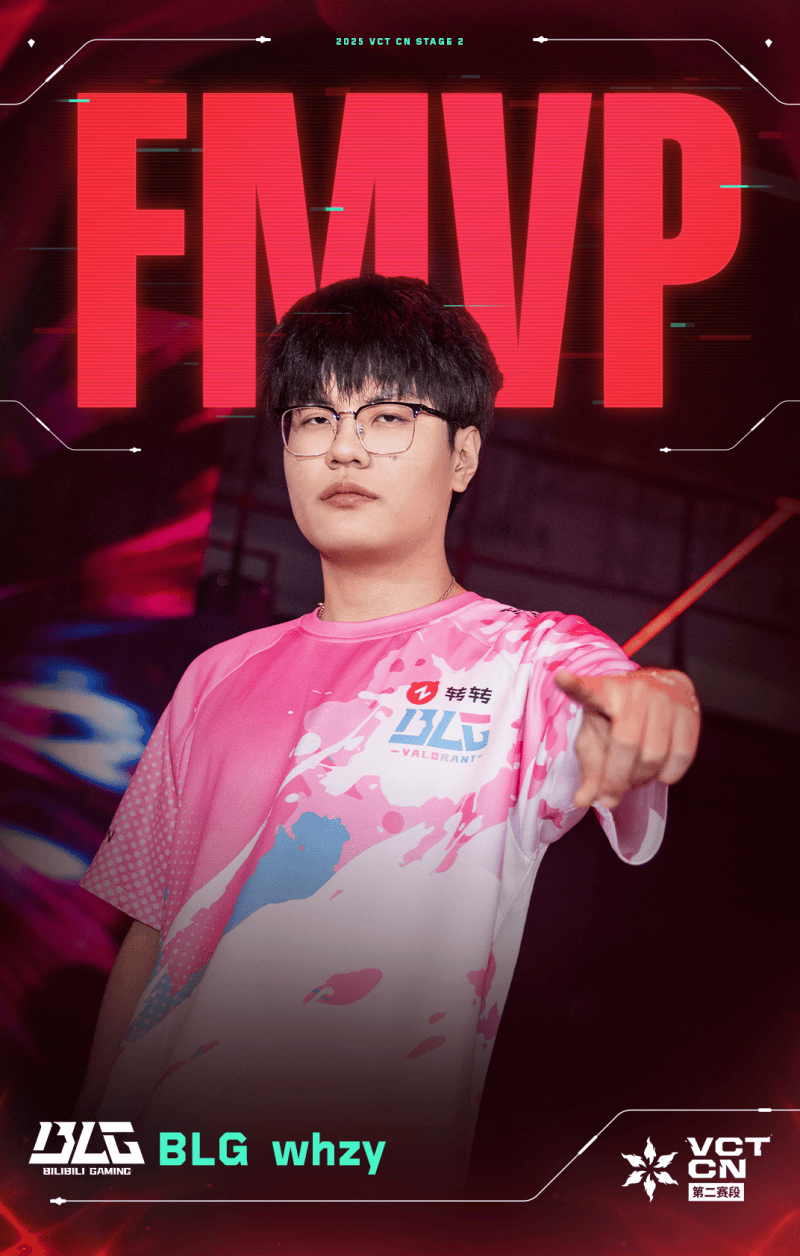 双方靡战四局,最终BLG以3-1复仇对手成功夺冠,捧起2025VCT CN联赛年度总冠军奖杯。BLG选手whzy获得2025 VCT CN联赛年度总决赛FMVP。
