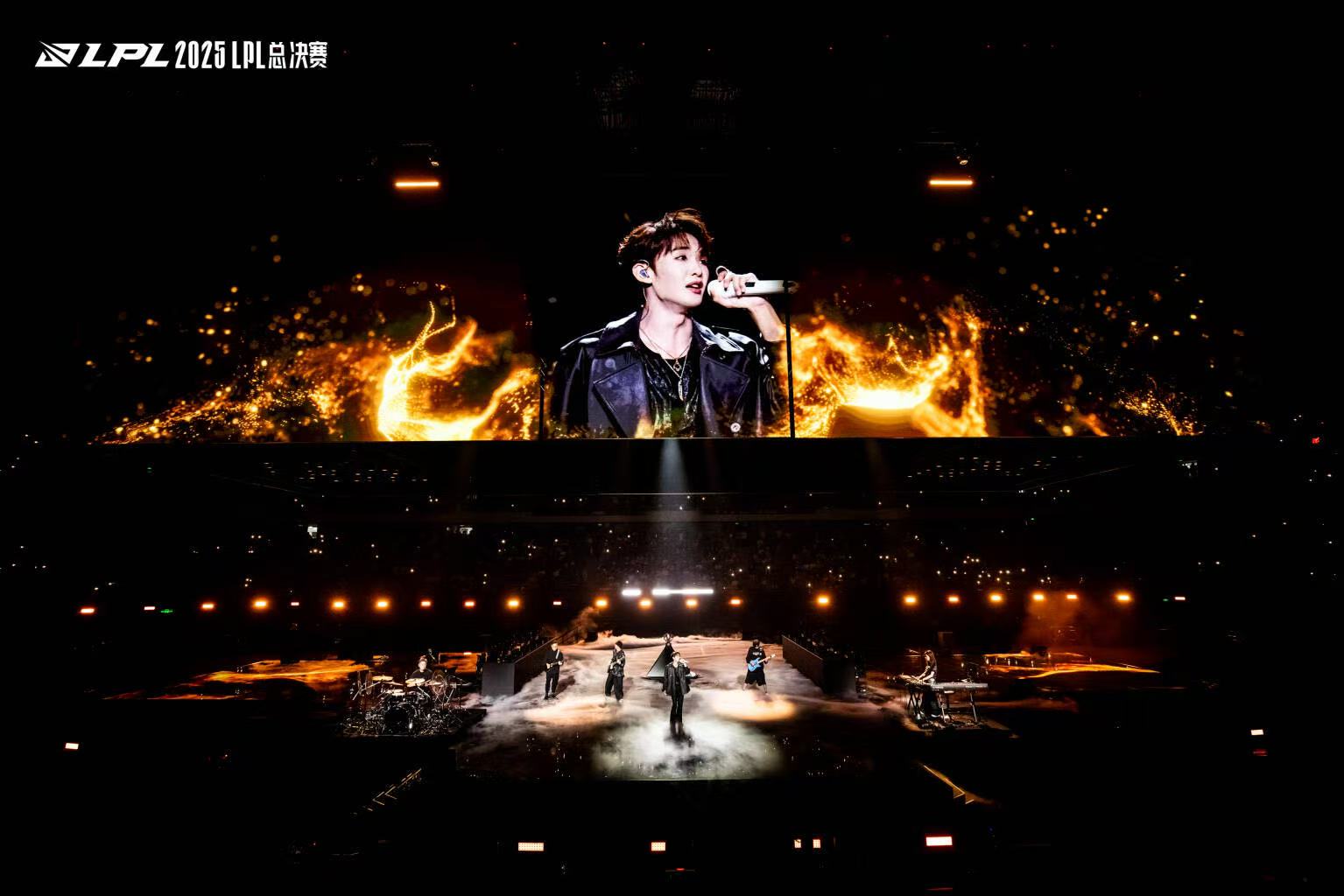 比赛间隙,明星召唤师王赫野作为LPL总决赛的演唱嘉宾,为现场及屏幕前的召唤师们带来了一场精彩的中场秀表演,并带着2025LPL全新出征曲《破》,为LPL队伍加油助威!祝愿选手们带着歌词中的“无畏无悔”在即将到来的全球总决赛舞台上,秉初心登险峰,展翼志凌云!终章之时,唯有信念化作长剑,冲破质疑战不休!