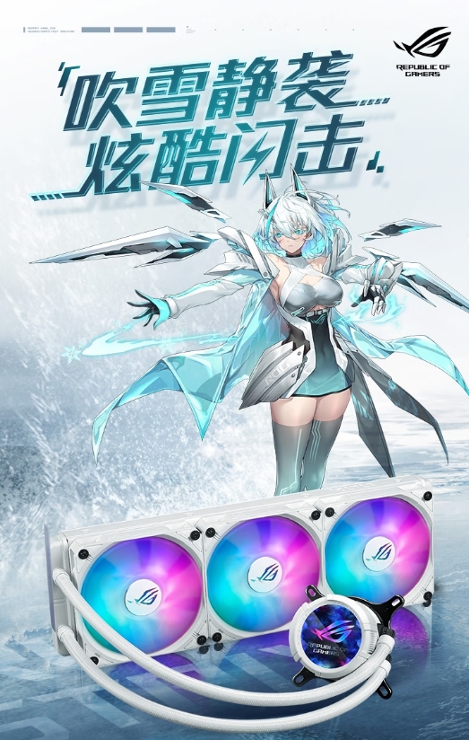 纯白全家桶—ROG STRIX飞龙3代360 LCD吹雪水冷散热器