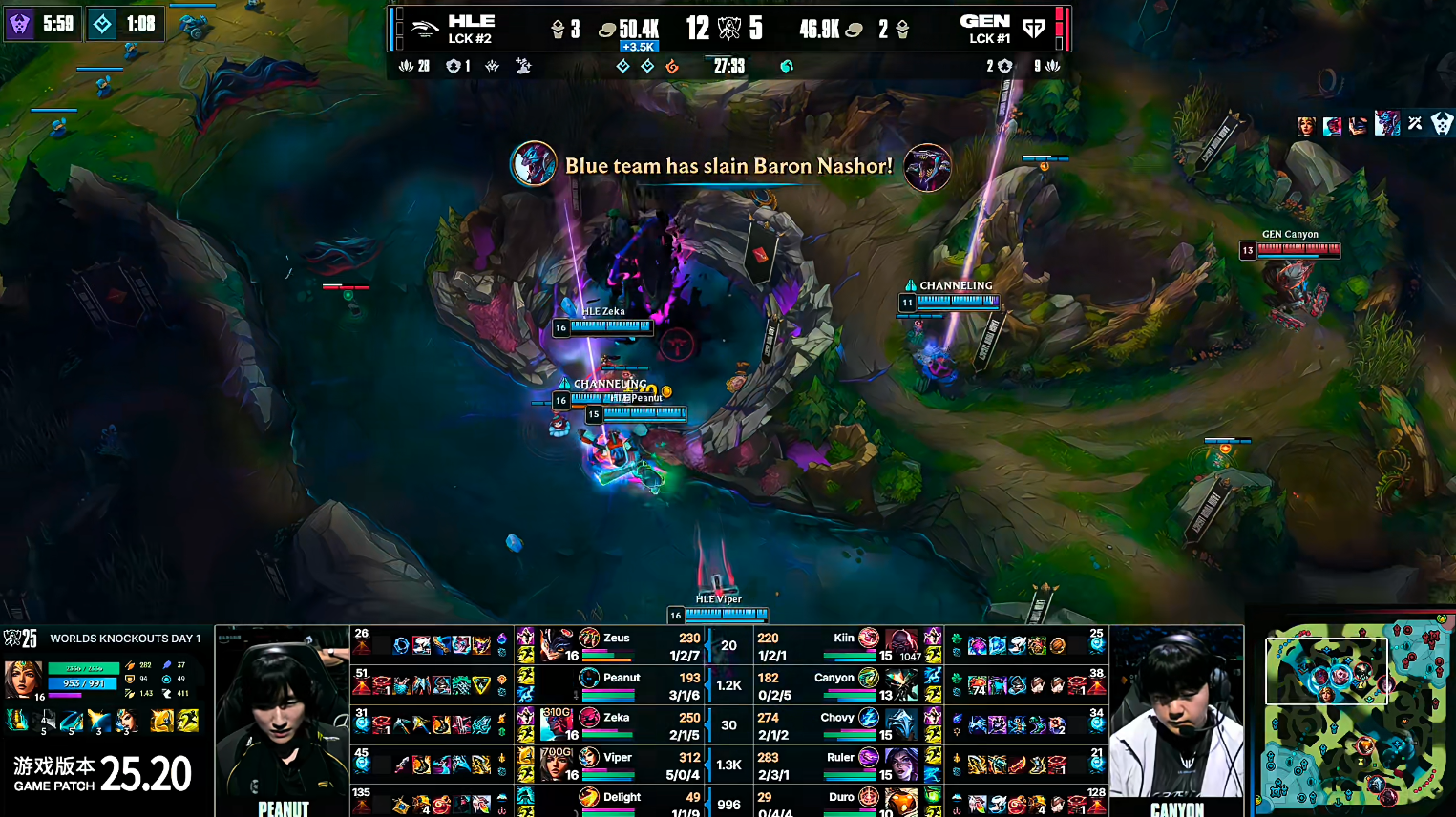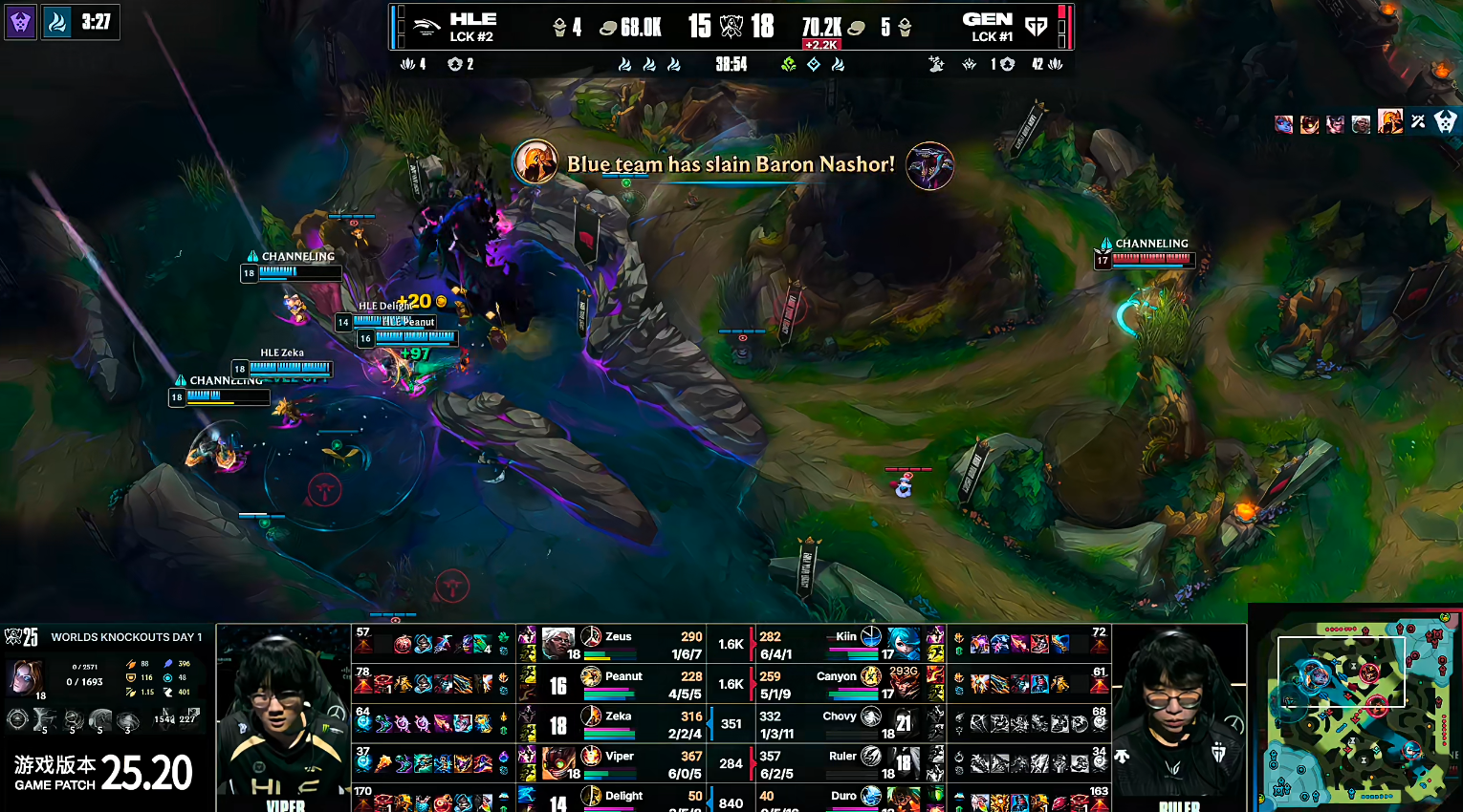 2025英雄联盟全球总决赛四分之一决赛,GEN 3-1击败HLE挺进四强!