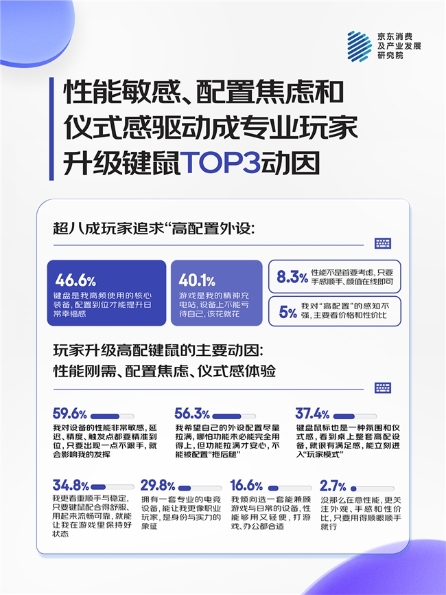 “性能敏感”、“配置焦虑“”仪式感体验“成玩家升级键鼠配置TOP3动因