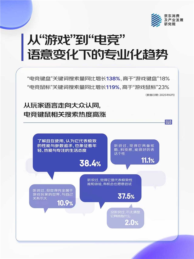 京东调研:电竞键鼠认知普及,超七成用户熟悉,近四成人认定其为极致性能和专业态度代表
