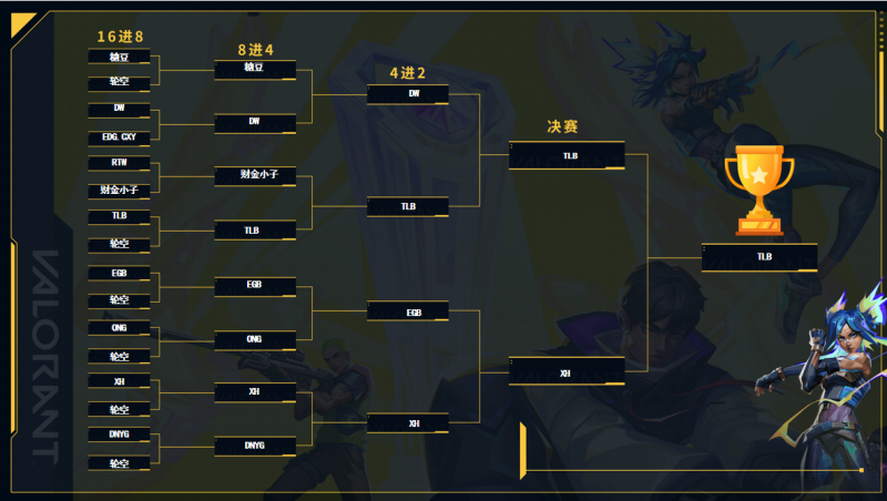 「糖豆」「TLB」「EGB」「ONG」「XH」「DNYG」凭借轮空直接晋级。最终8支战队顺利闯入8强。
