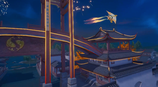 为迎接兔年新春,《和平精英》早在去年年末便将江南园林融入游戏世界,推出了带有中国特色的新春园林版本。在这古色古香的园林背后,藏着《和平精英》的巧思与洞察——江南园林所具备的文化韵味,恰与春节底蕴形成映照,一改游戏中海岛地图的废墟画风,碰撞出节日的新意。借园林之景,《和平精英》以张灯结彩的喜庆布置烘托新春的热闹氛围,让玩家过个江南味儿的中国年。而只要进入这座新春园林就可以发现,《和平精英》在玩法中悉数融入吉祥元素,用数字技术为玩家打造沉浸式的新春体验。从打卡鲤鱼跃龙门到搭乘纸鸢飞行器,甚至是年画祈福、吃年夜饭、打年兽等年俗,《和平精英》统统安排上了。借这些传统年俗背后的吉祥寓意,《和平精英》向玩家送上新年祝福,更进一步打通了代表游戏胜利的「吃鸡」与春节送吉利之间的心智关联。