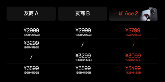 一加 Ace 2 12GB + 256GB 版本,售价2799元;