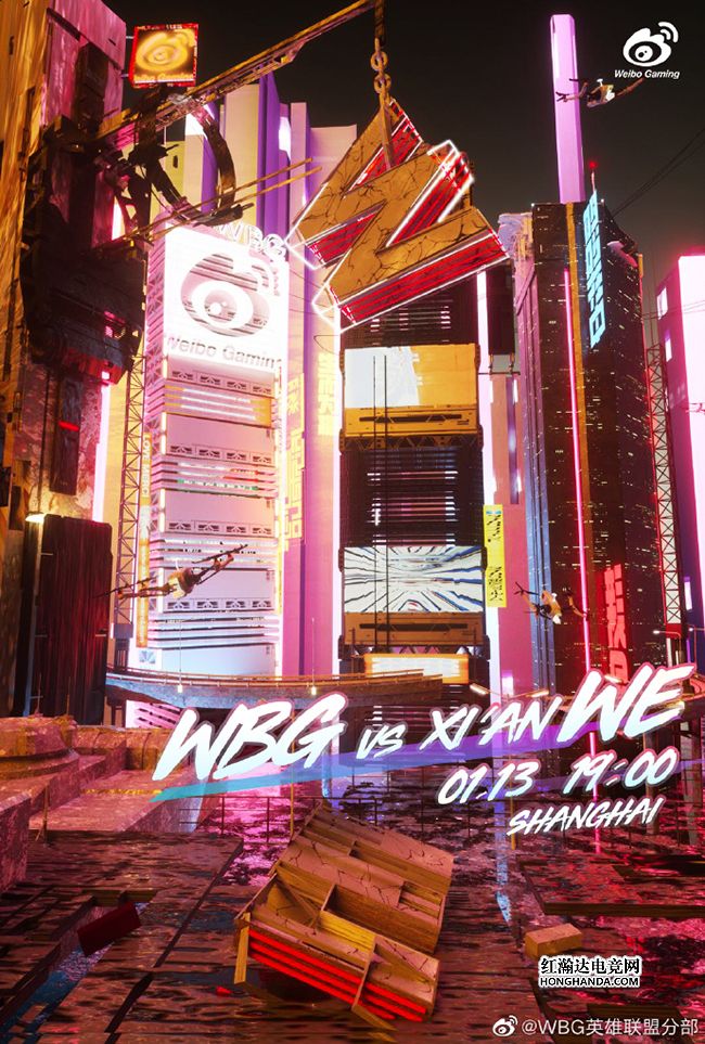 WBG的海报标题为“出征之志”,在赛博朋克风的建筑群中,微博大眼仔的灯牌赫然在目,WBG大楼旁边的吊塔已经把对手WE的LOGO悬在了半空中,似乎是要在原来WE基地的“废墟”上建造属于自己的城邦。前S10亚军SN战队在转会期被微博电竞收购,正式更名为WBG,并引入LPL超人气上单TheShy,此外原SN队长“蛇蛇”SwordArt回归,令各界纷纷看好WBG在今年的表现,大家觉得TheShy和SofM会整出怎样的“花活”呢?